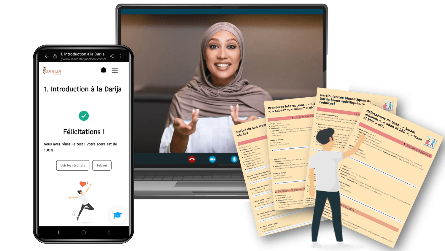 Accès à la formation en ligne complète et enrichie régulièrement avec du nouveau contenu (Parcours guidés en fonction du niveau, fiches, audios, vidéos, quiz, conseils pratiques, prononciations, recommandations..)